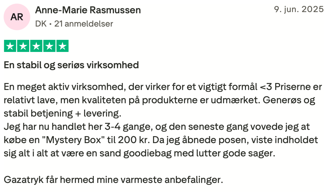 Når du handler hos Gazatryk, støtter du mere end et brand. En del af overskuddet går direkte til humanitære formål i Gaza, herunder vores samarbejde med et børnehjem drevet som NGO. På den måde kombinerer vi handel med konkret hjælp.